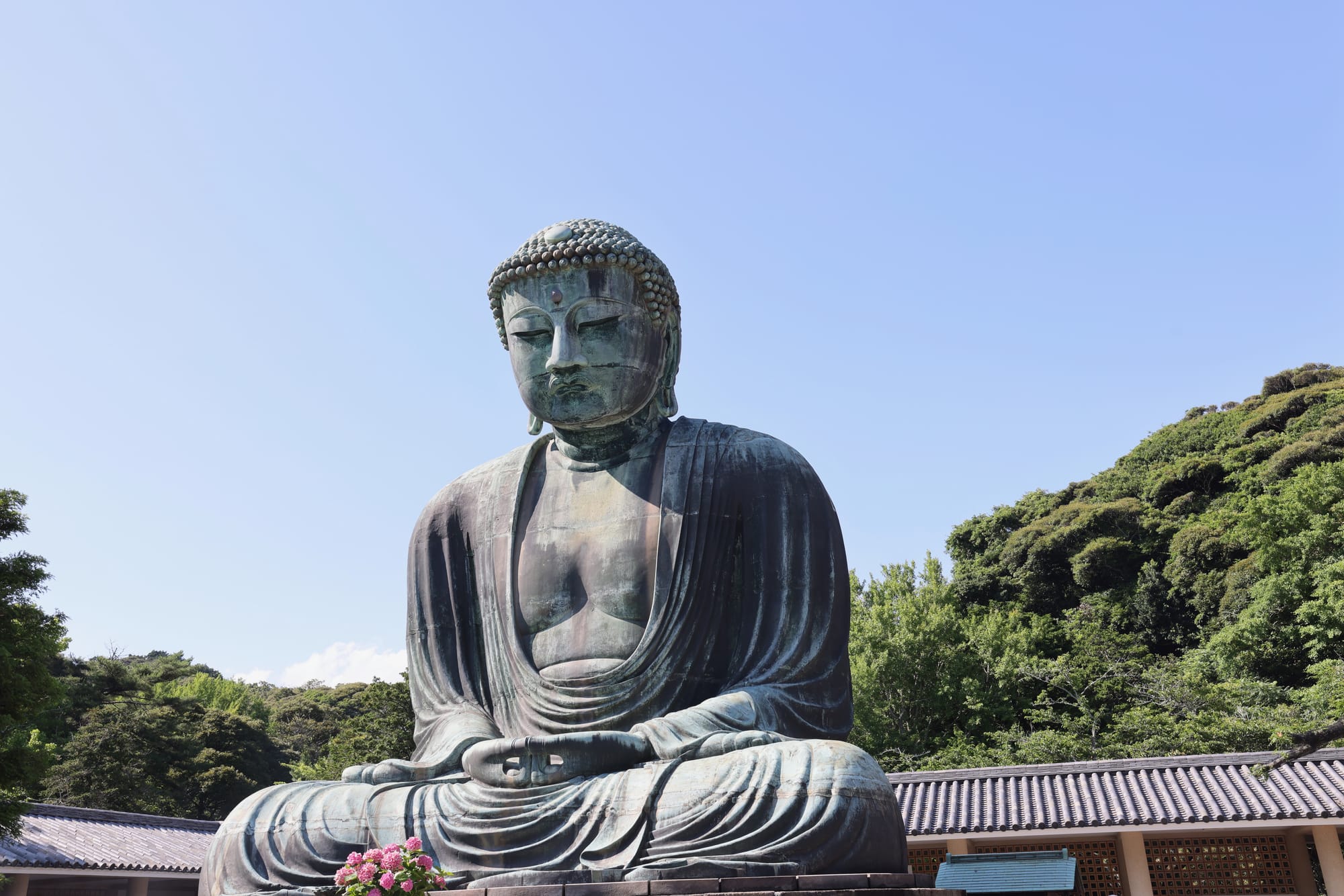 The Great Buddha of Kamakura (鎌倉大仏, Kamakura Daibutsu) is a large bronze statue of Amitābha, located on the temple grounds. Including the base, it measures 13.35 metres (43.8 ft) tall and weighs approximately 93 tonnes (103 tons).[1] According to temple records, the statue dates from around 1252, during the Kamakura period, which it is named after.[2]