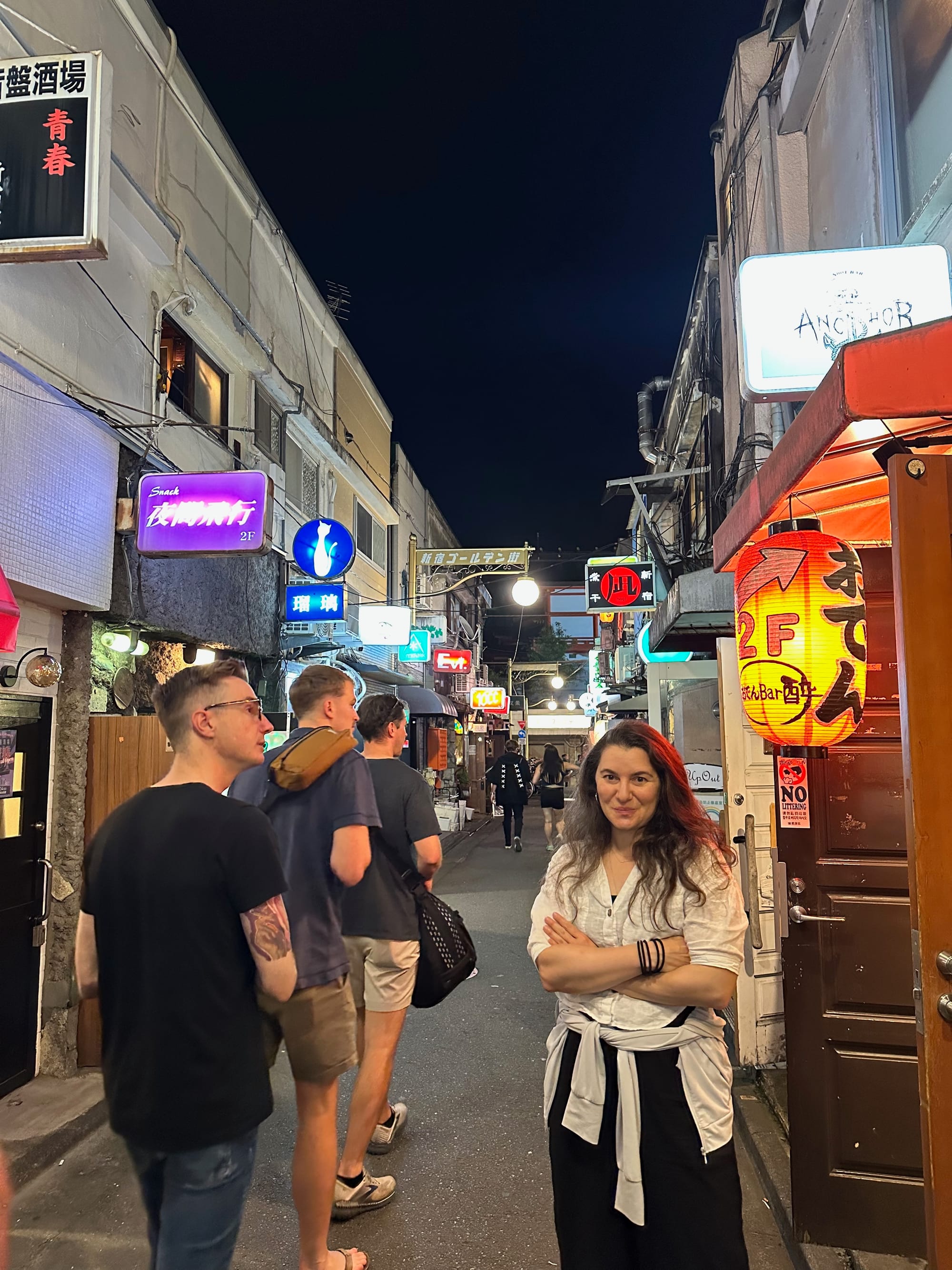 After we got the rest of the family back to the sleepy spot, Julie mentioned that she had seen a really interesting strip of night spots in little allies. It turns out that this area is called Shinjuku Golden Gai.