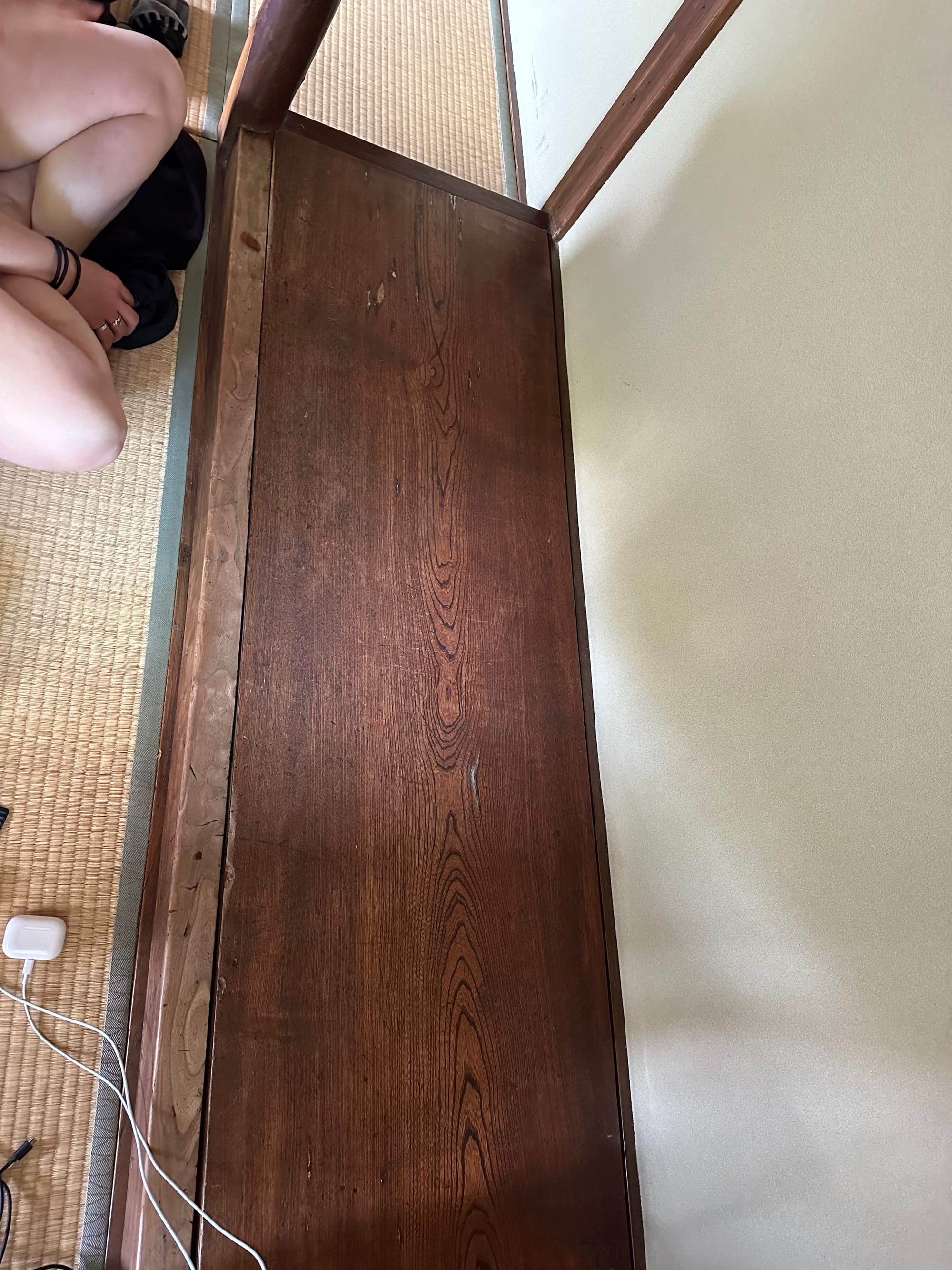 We had dinner at an amazing local sushi restaurant. Food was excellent, but just as important, the staff provided us with a wire of just the right thickness that we could use to dangle into the cracks of the flooring to help Julie recover her necklace. It took a while, but it worked!