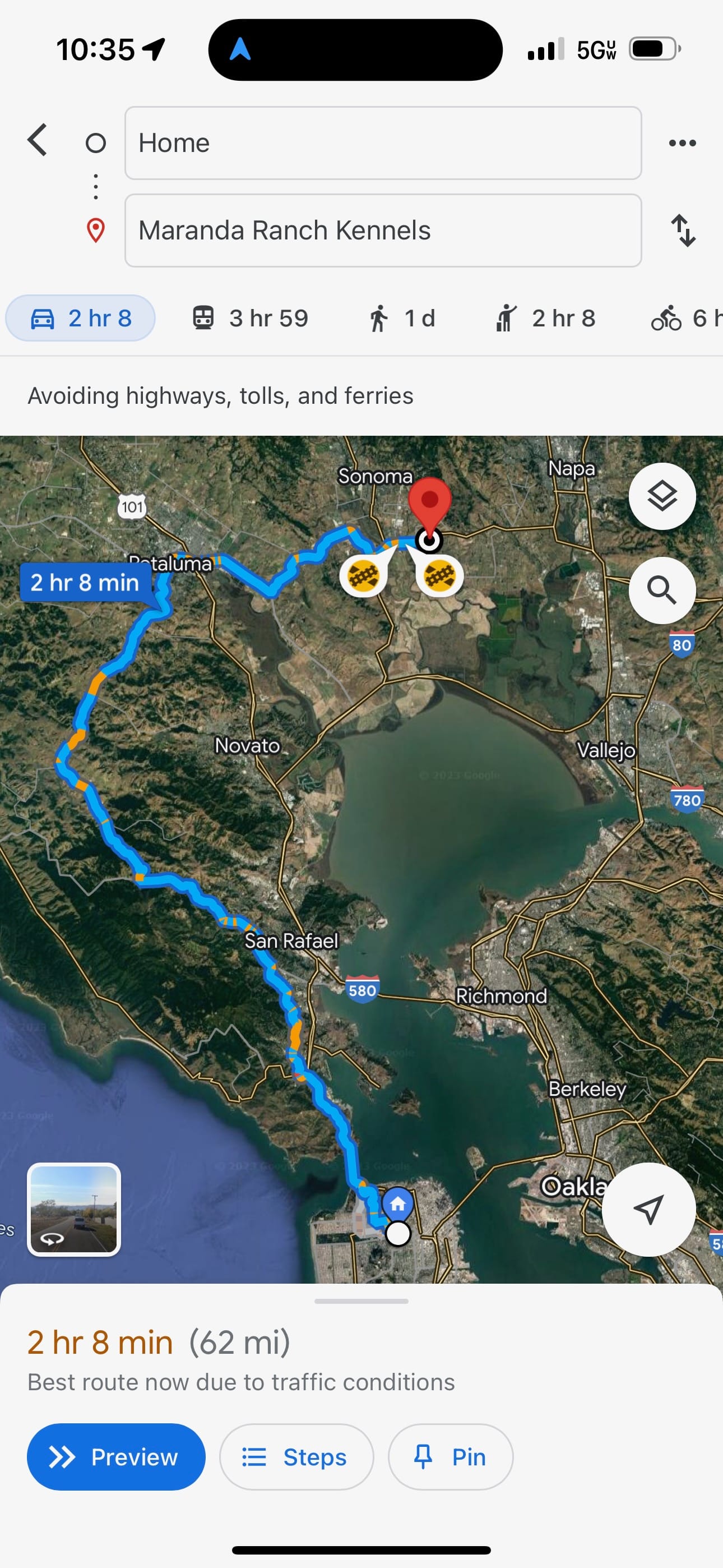 Before any sleep, a run up to Sonoma to pick up our doggie before kennel closing time.