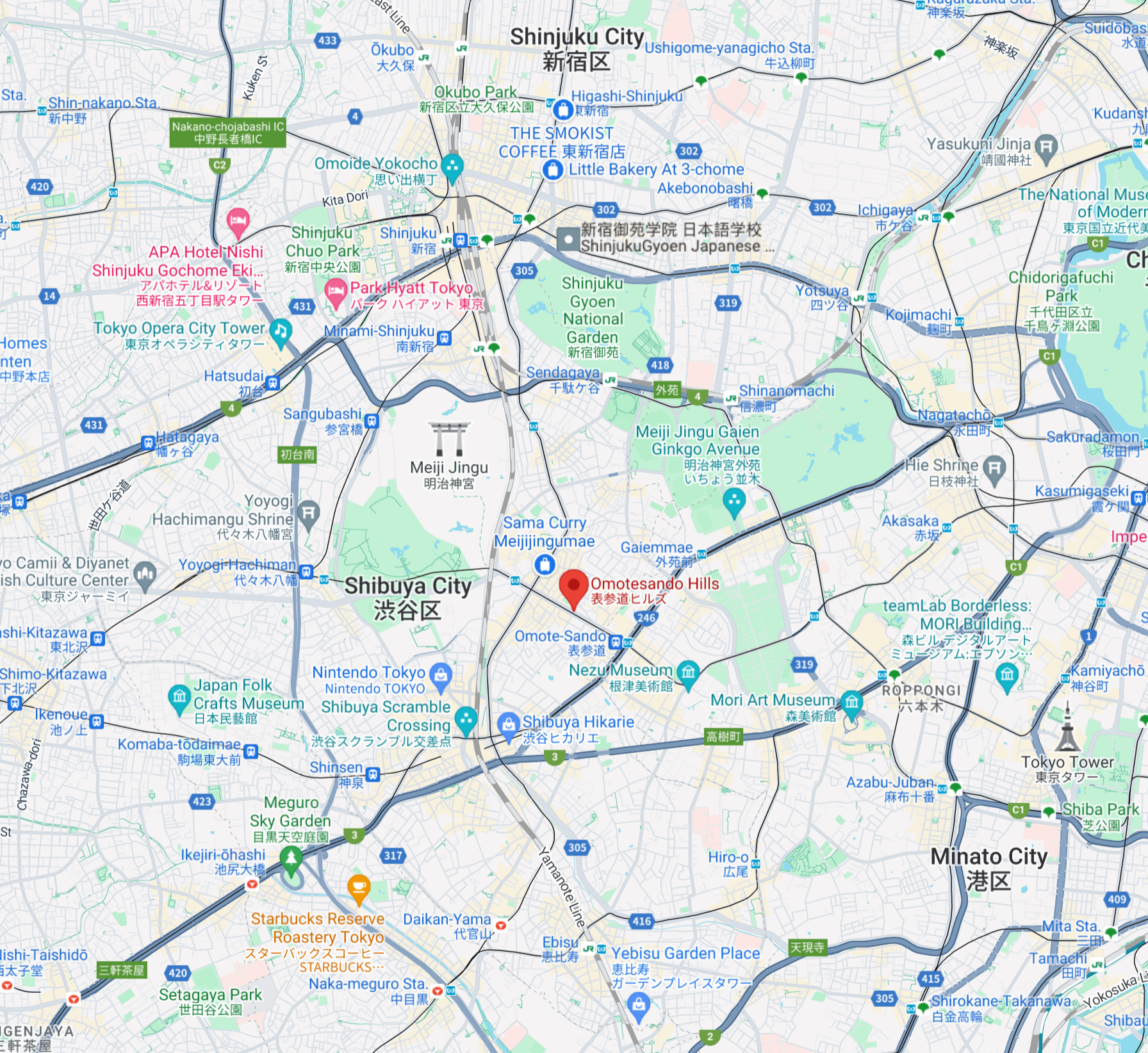 In our discussions with Vivien, she had mentioned a neighborhood in central Tokyo that she called Omotesando Hills. She mentioned that Rene Omi (my maternal grandmother) had lived in this neighborhood with Charles and Bodil Davidson when she was a small child. This would have been in the 1930's, before World War II broke out. Rene was born in Japan in 1931, when they presumably lived in this neighborhood. After the war, Charles Davidson would return to Omotesando Hills for his work with the Salvation Army, and Vivien remembers visiting him there as a very young child.